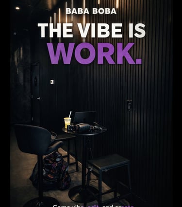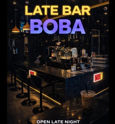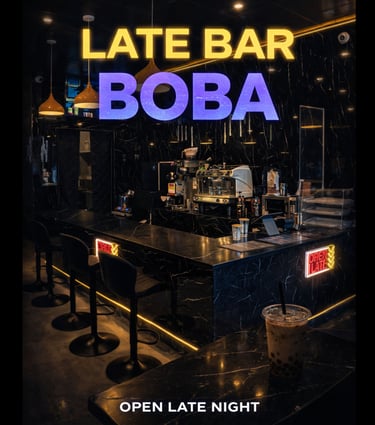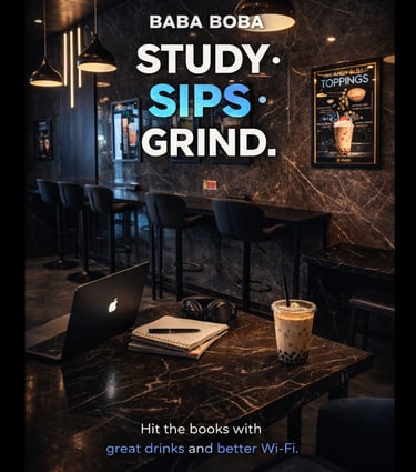 Baba Boba offers an incredible atmosphere and delicious drinks! The Dubai Boba is a must-try, and the late-night vibe is perfect for studying.