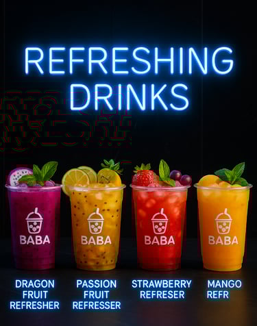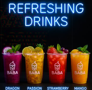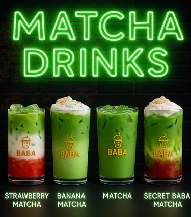 Baba Boba offers an incredible atmosphere and delicious drinks! The Dubai Boba is a must-try, and the late-night vibe is perfect for studying.